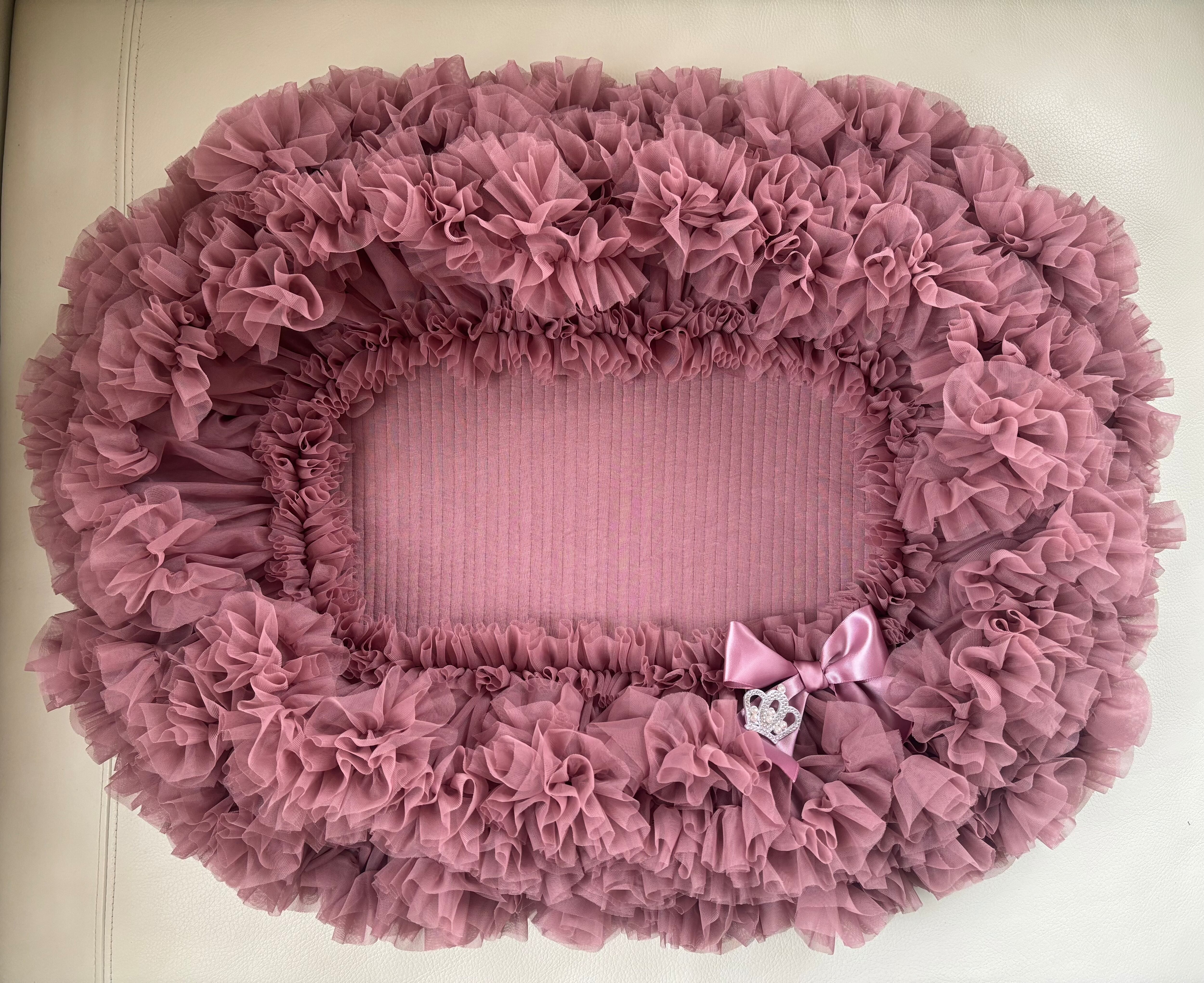 お座り部分には、ニット素材を使用しており、持ち運びに便利な薄手でキルティング仕上げ。可愛らしいダスティピンクの色合いが、どんなシーンにもマッチし、愛犬との楽しい時間をサポートします!