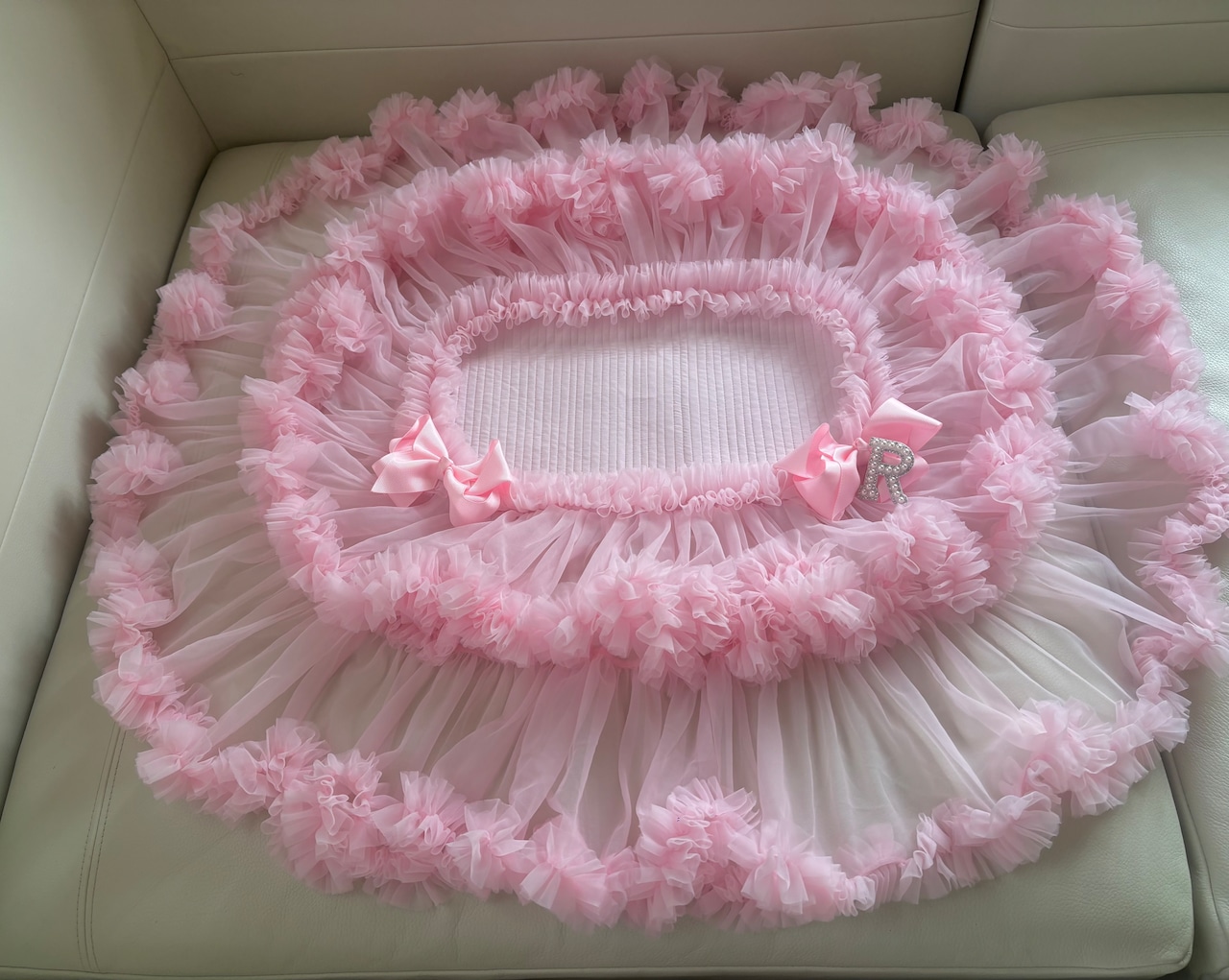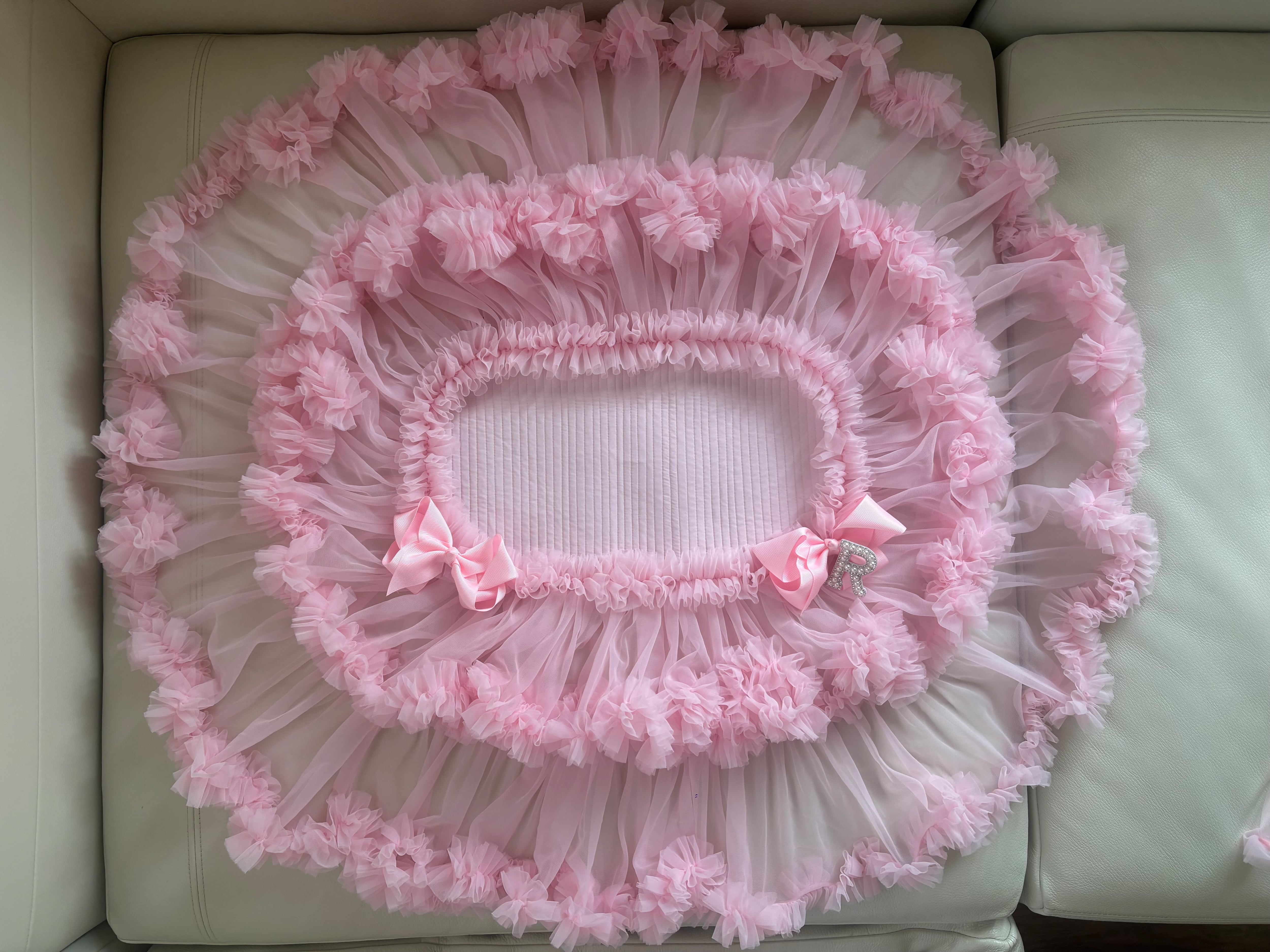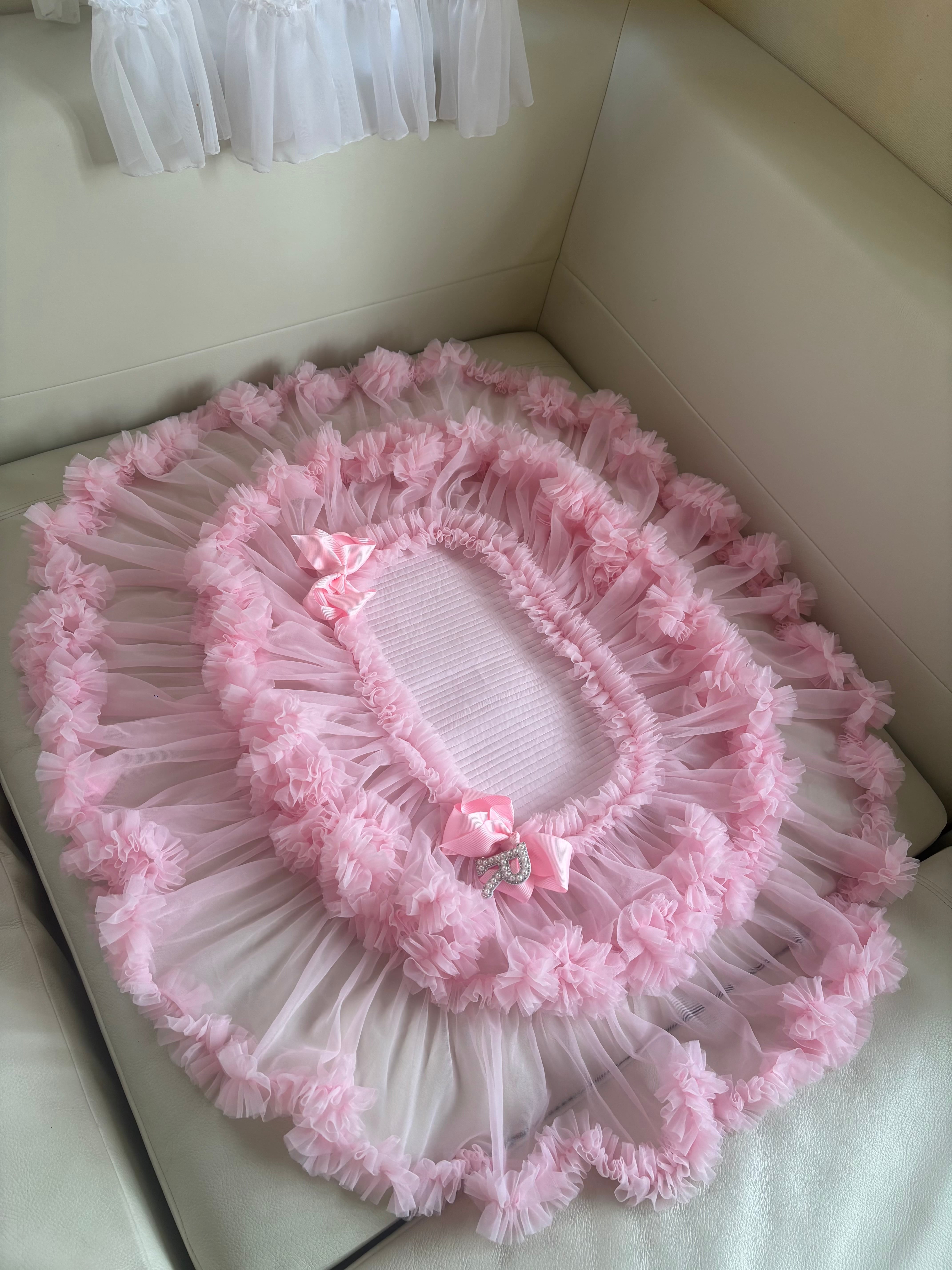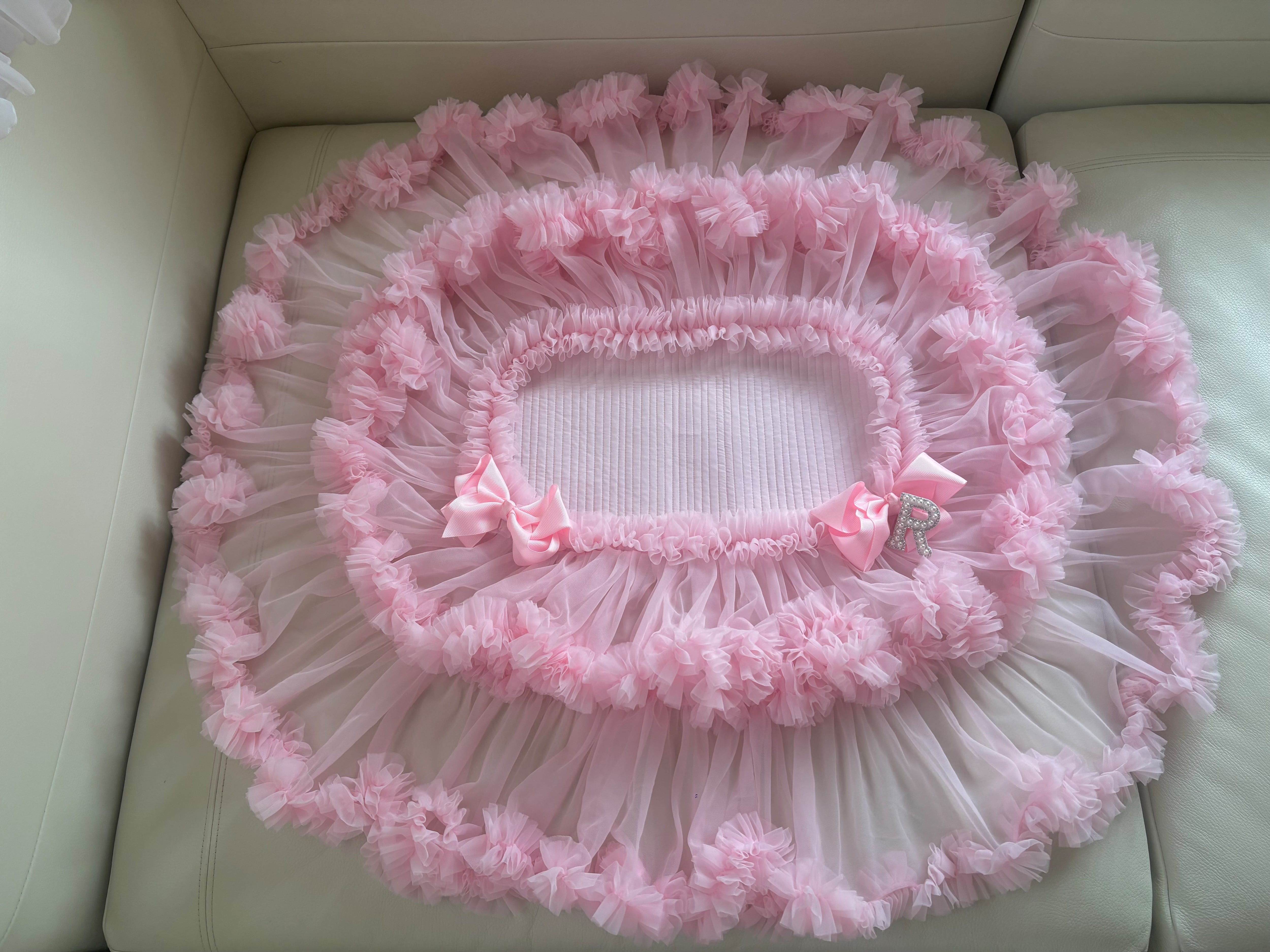 フリルが長めのマットは、カゴに乗せてもゴージャス感満載で可愛い仕上がりです!