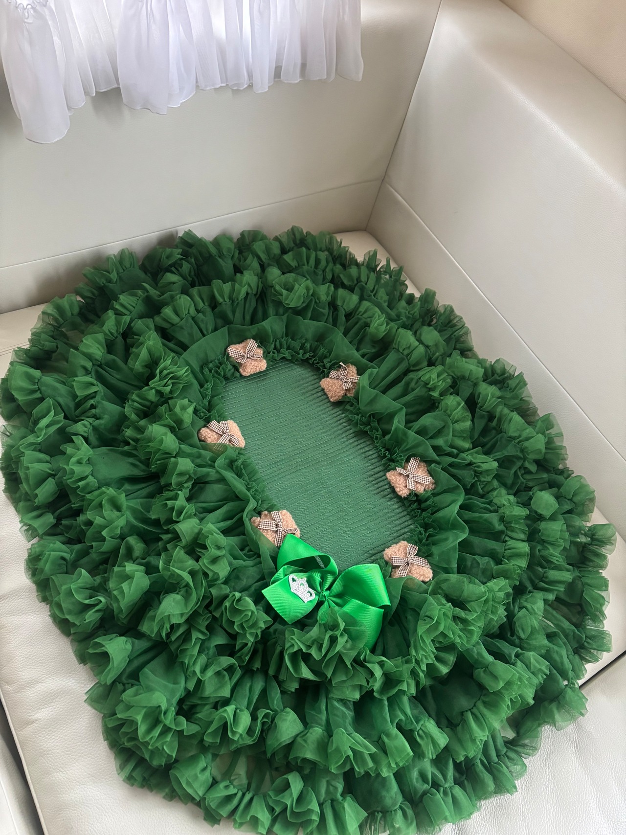 ゴージャスなグリーンのマットは、クリスマスの雰囲気を一層引き立てるだけでなく、かわいいテディベアが取り外し可能ですので、ご自分のスタイルに合わせてデザインを楽しんでいただけます♡