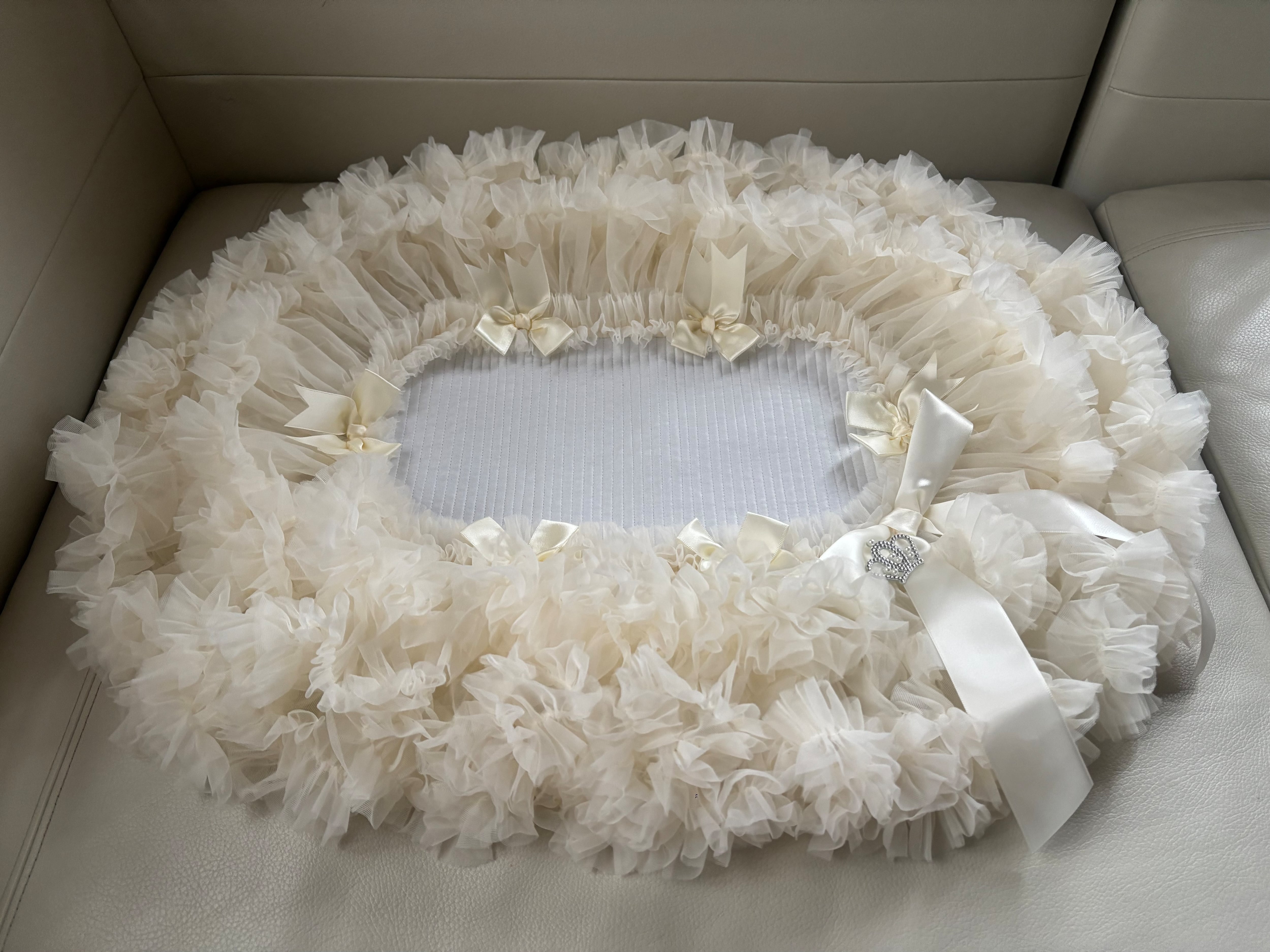 このカフェマットは、同色のリボンがとても可愛く、心温まる時間を華やかに演出します。上品なデザインで、素敵なひとときをお手伝いします♡