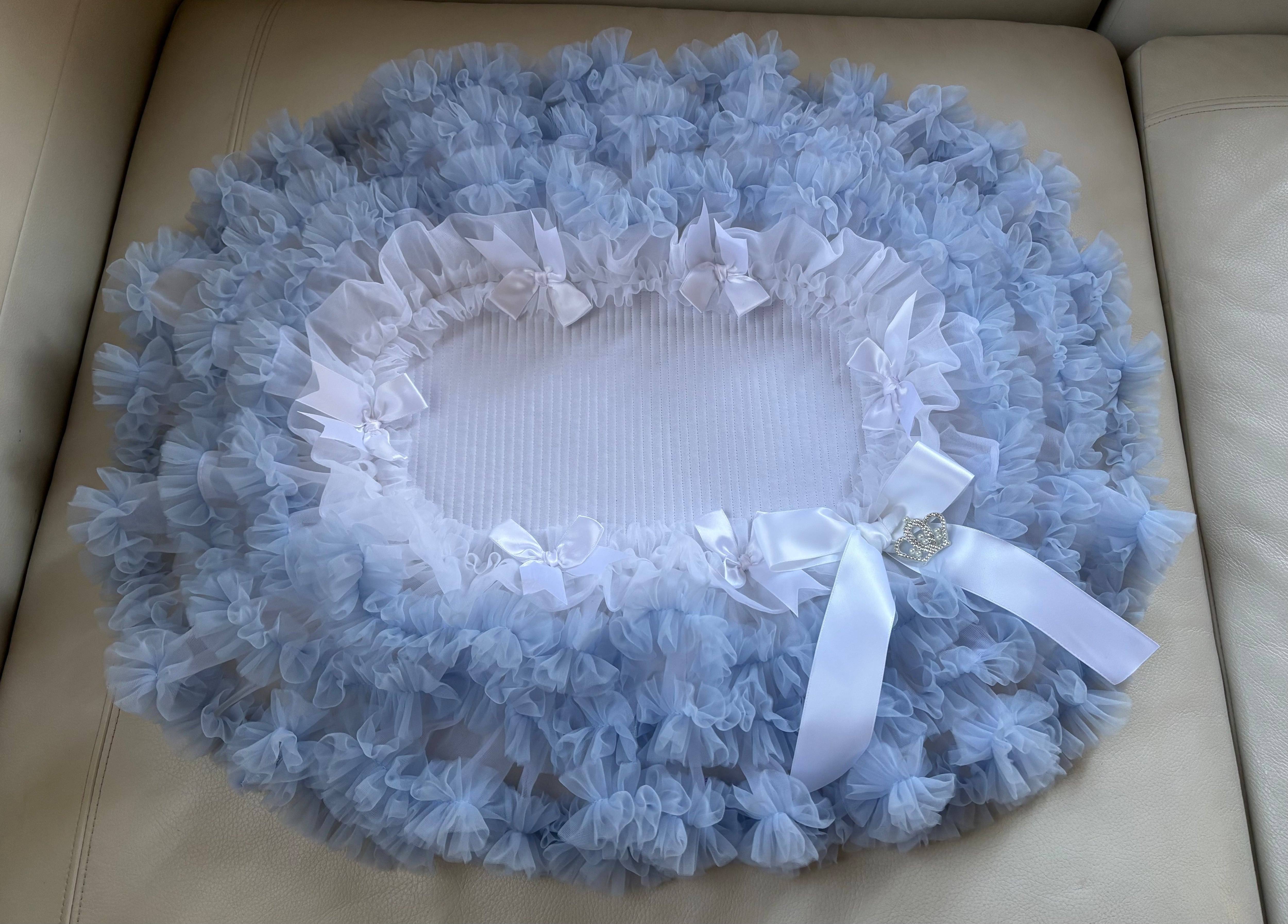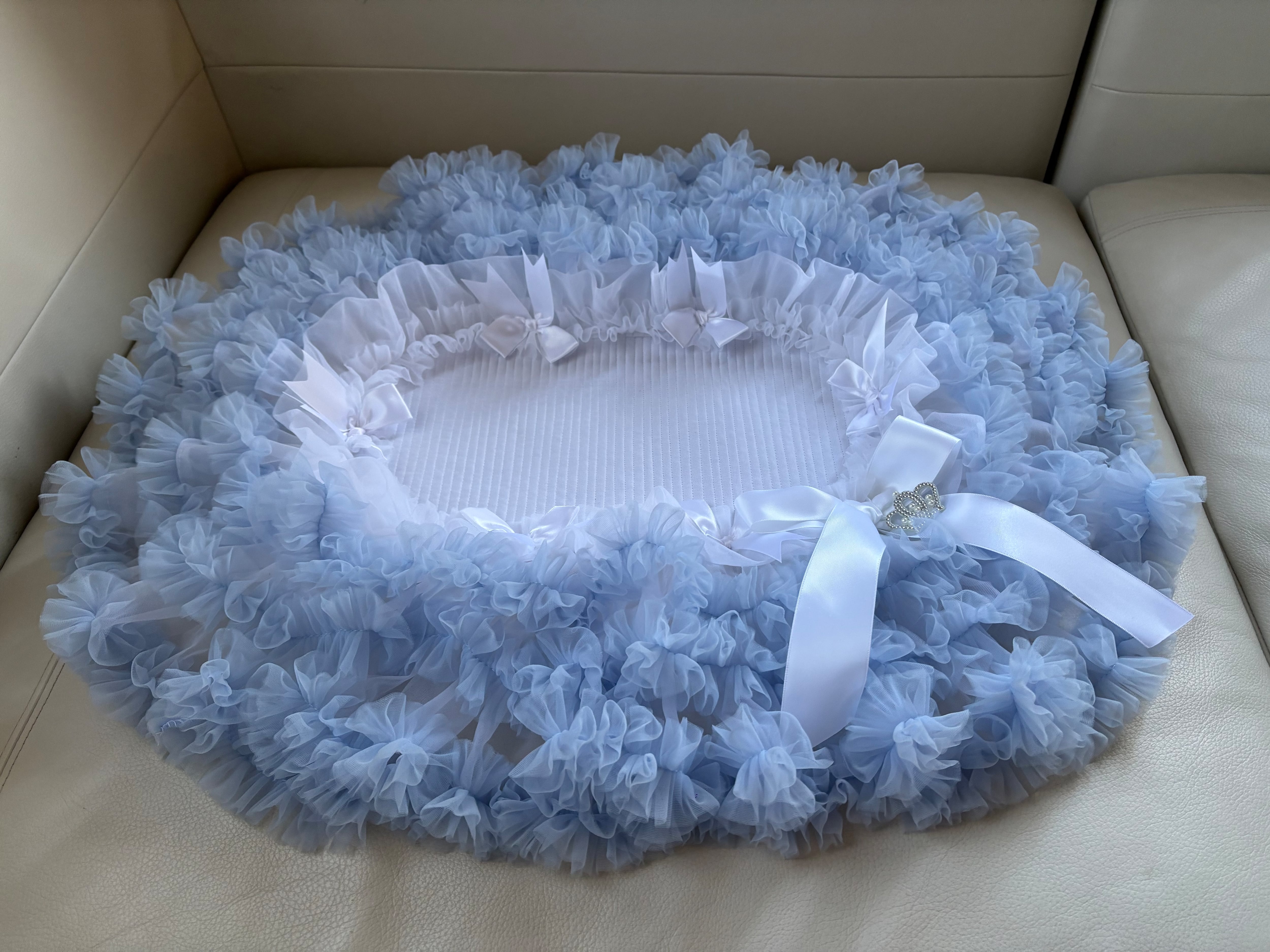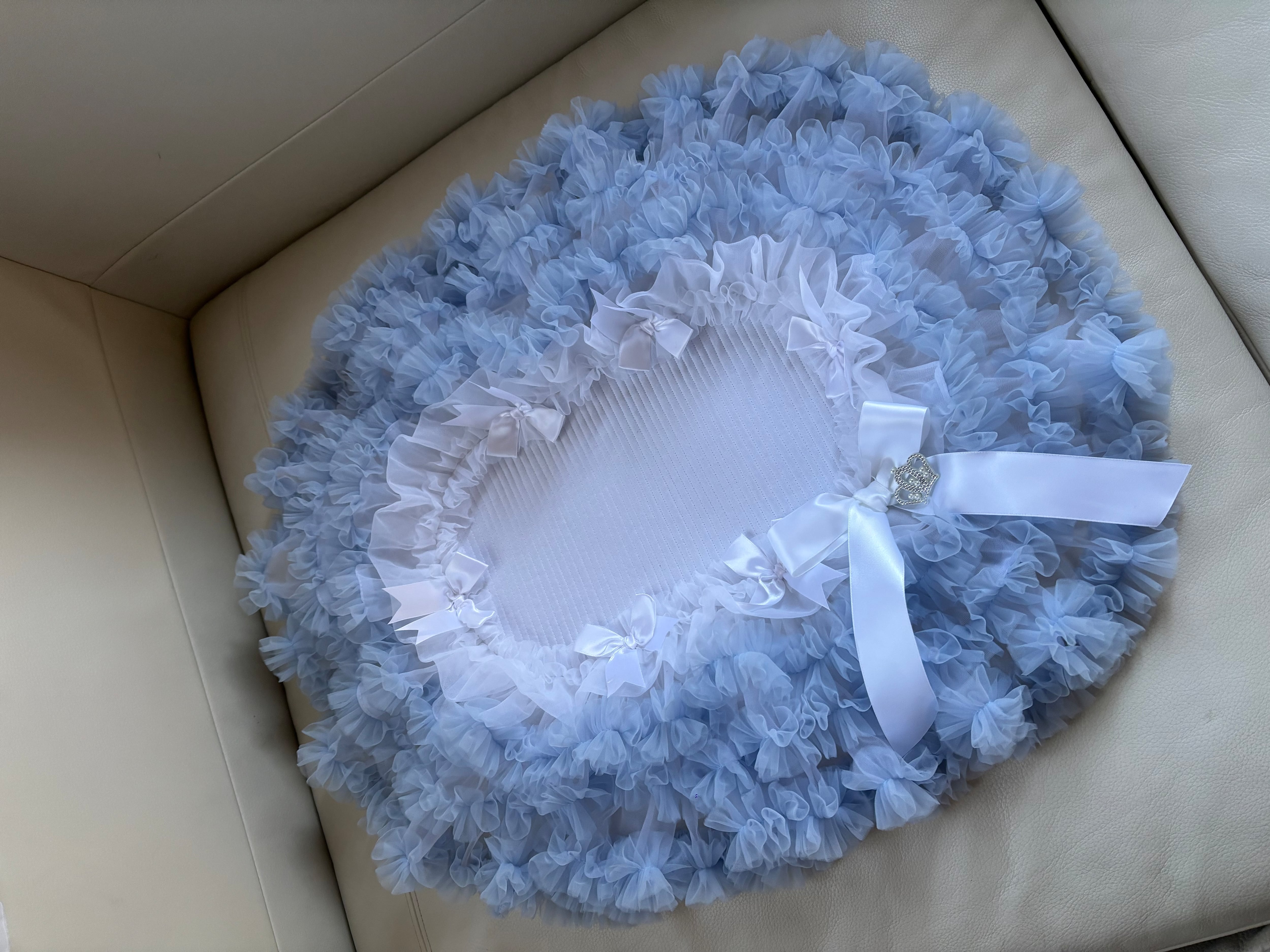可愛さを凝縮した「ベビーブルー」のカフェマットが登場です!ほんのり優しいベイビー・ブルーの色合いに、リボンがたっぷりとデザインされたこのマットは、撮影に華やかさをプラスしてくれます(ᵔᴥᵔ)