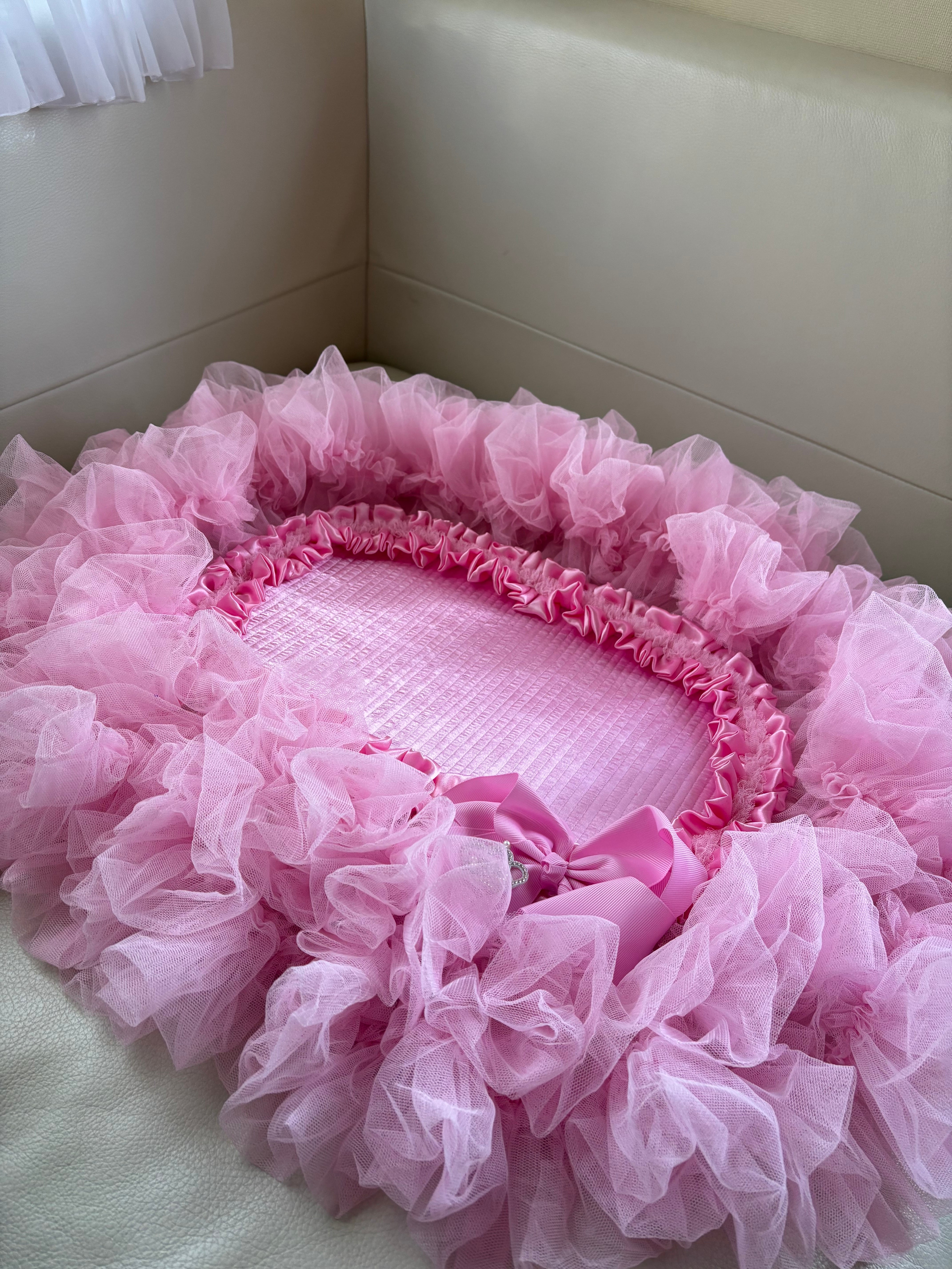 ふんわりと重なるチュールに、