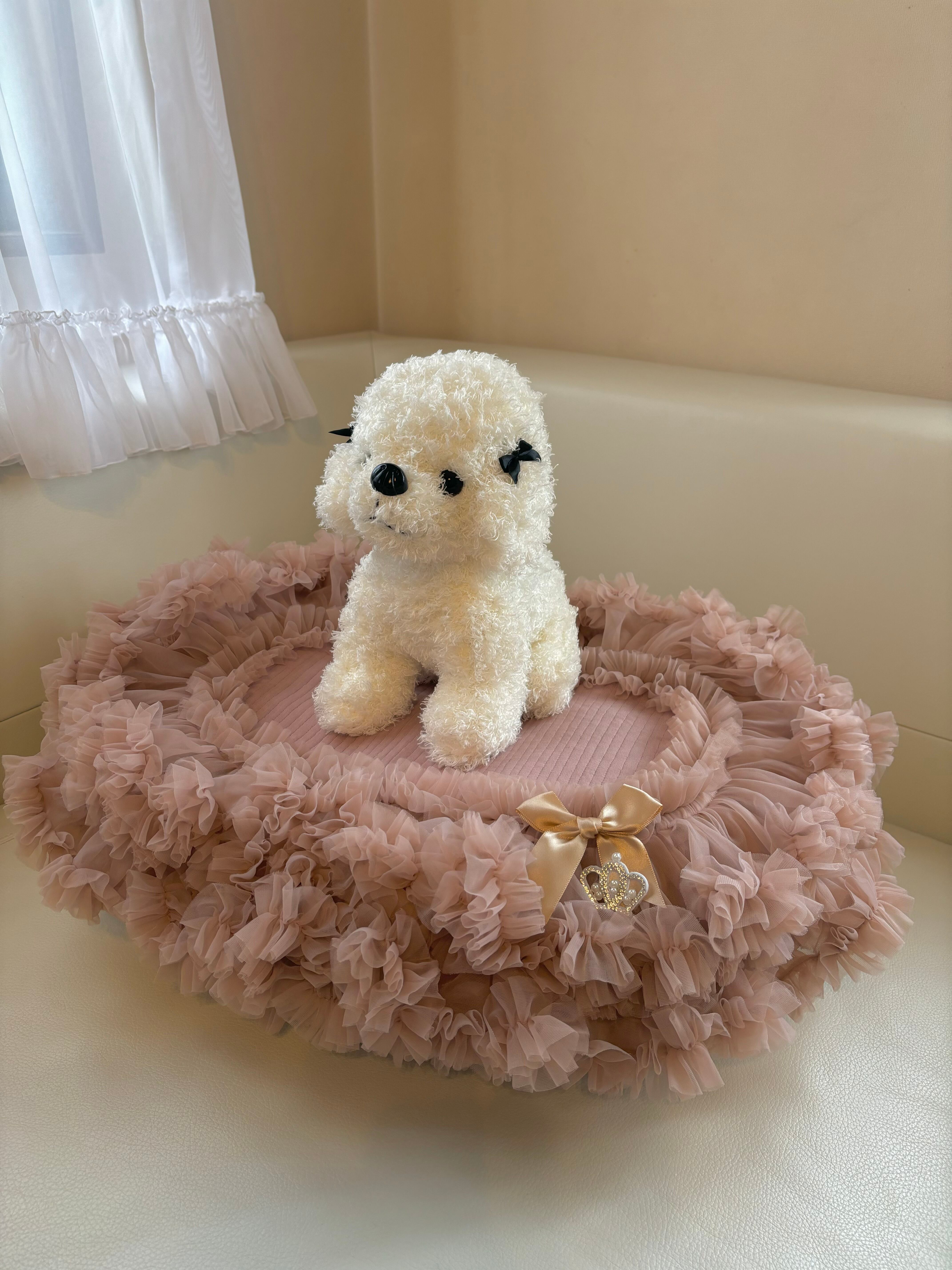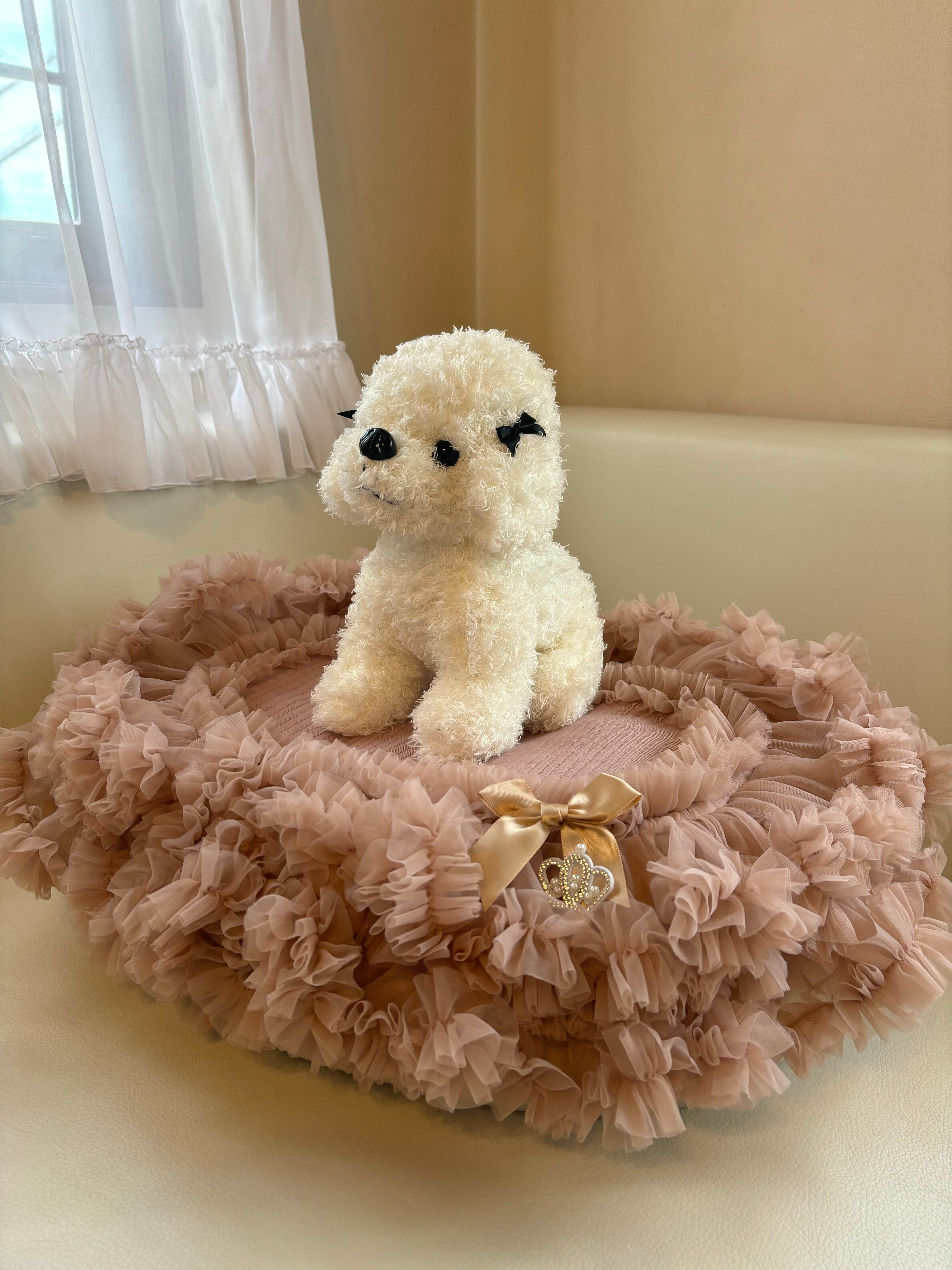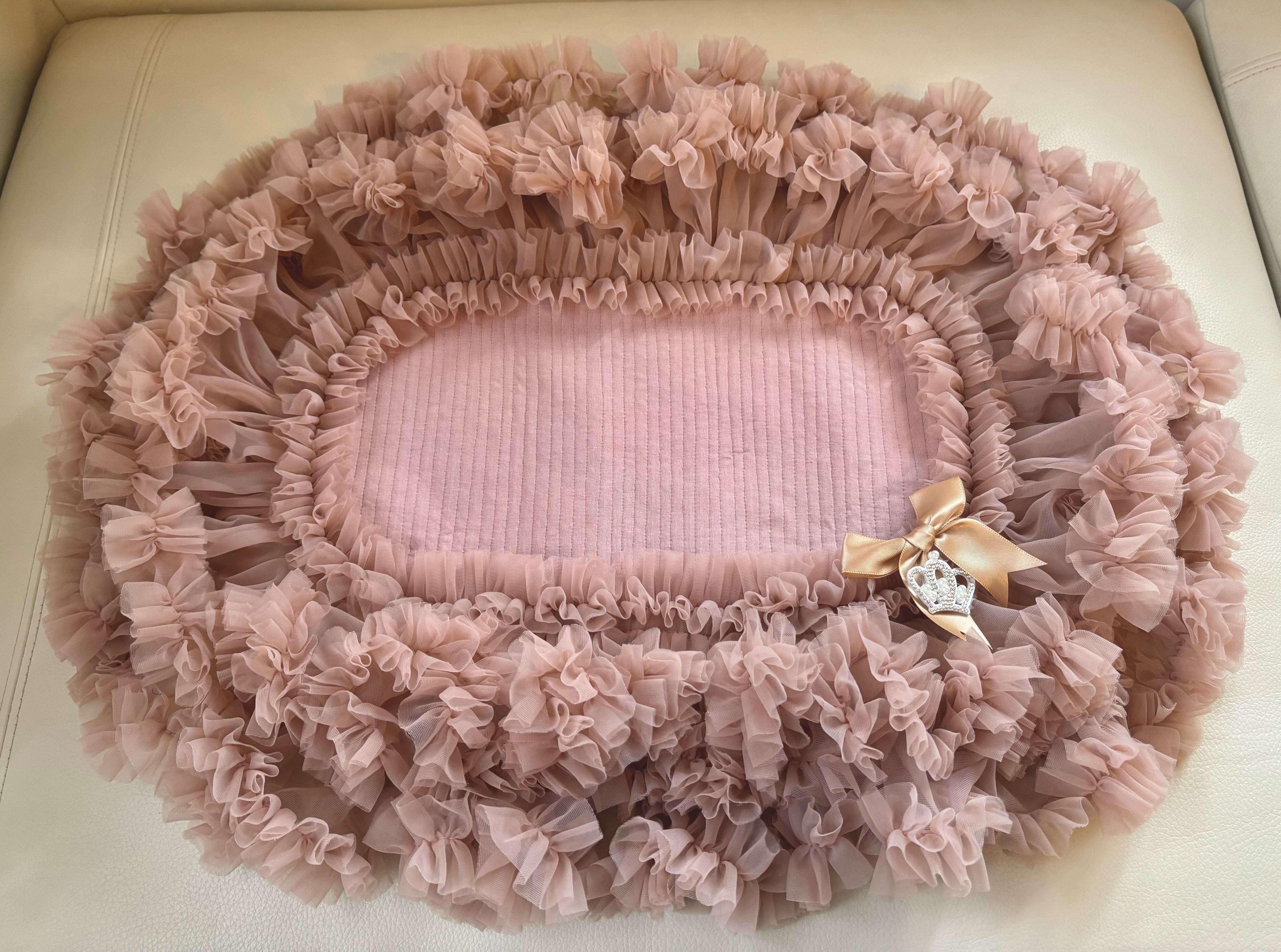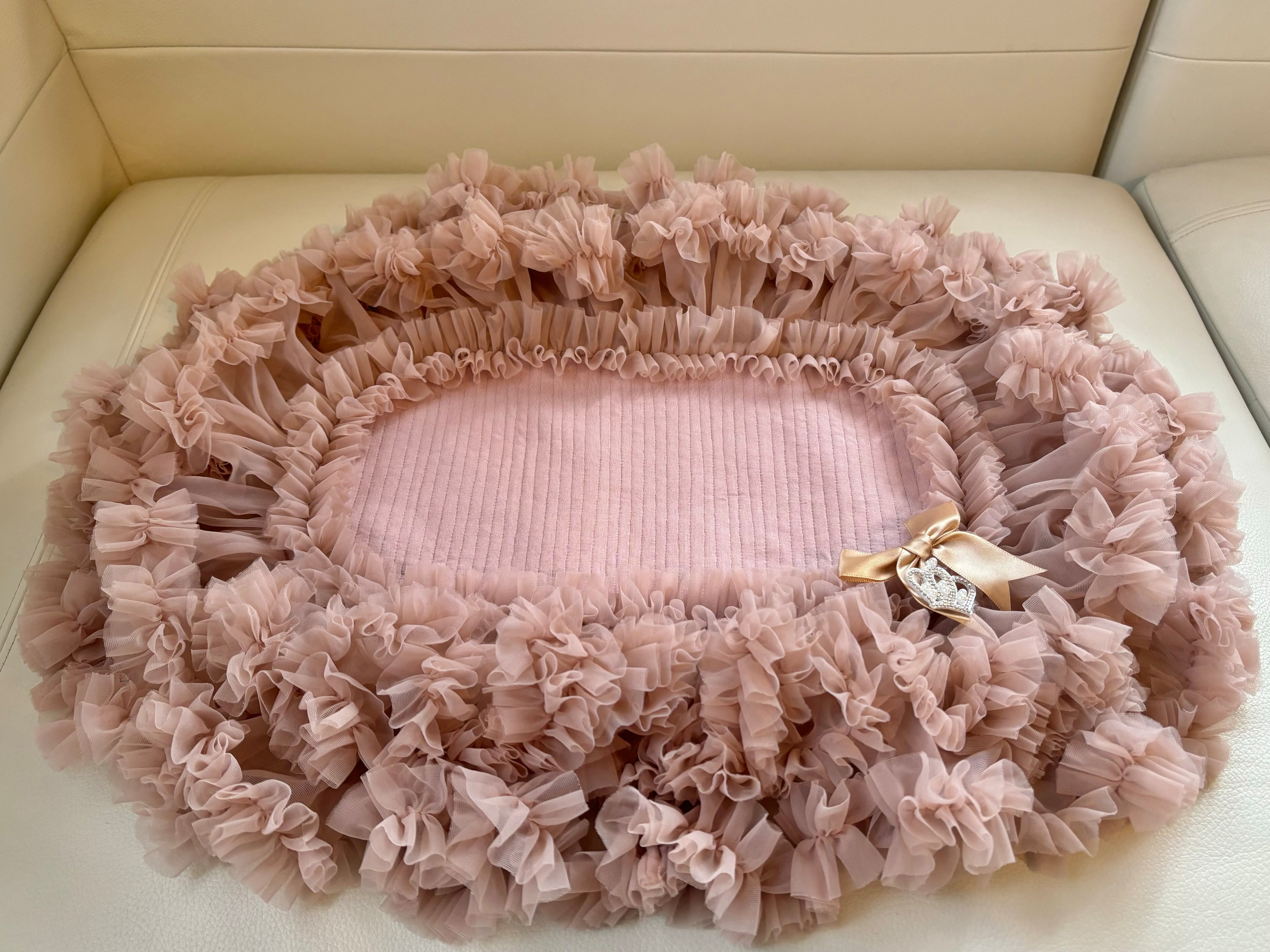 お座り部分には、優しいニット素材を使用しており、持ち運びにも便利な薄手でキルティング仕上げ。シンプルなベージュが、どんなシーンにもマッチし、愛犬とのおしゃれな時間をサポートします!