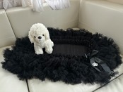 お座り部分には、サテン素材を使用しており、持ち運びに便利な薄手でキルティング仕上げ。華やかなデザインが、どんなシーンにも見事にマッチし、愛犬との楽しい時間をサポートします!