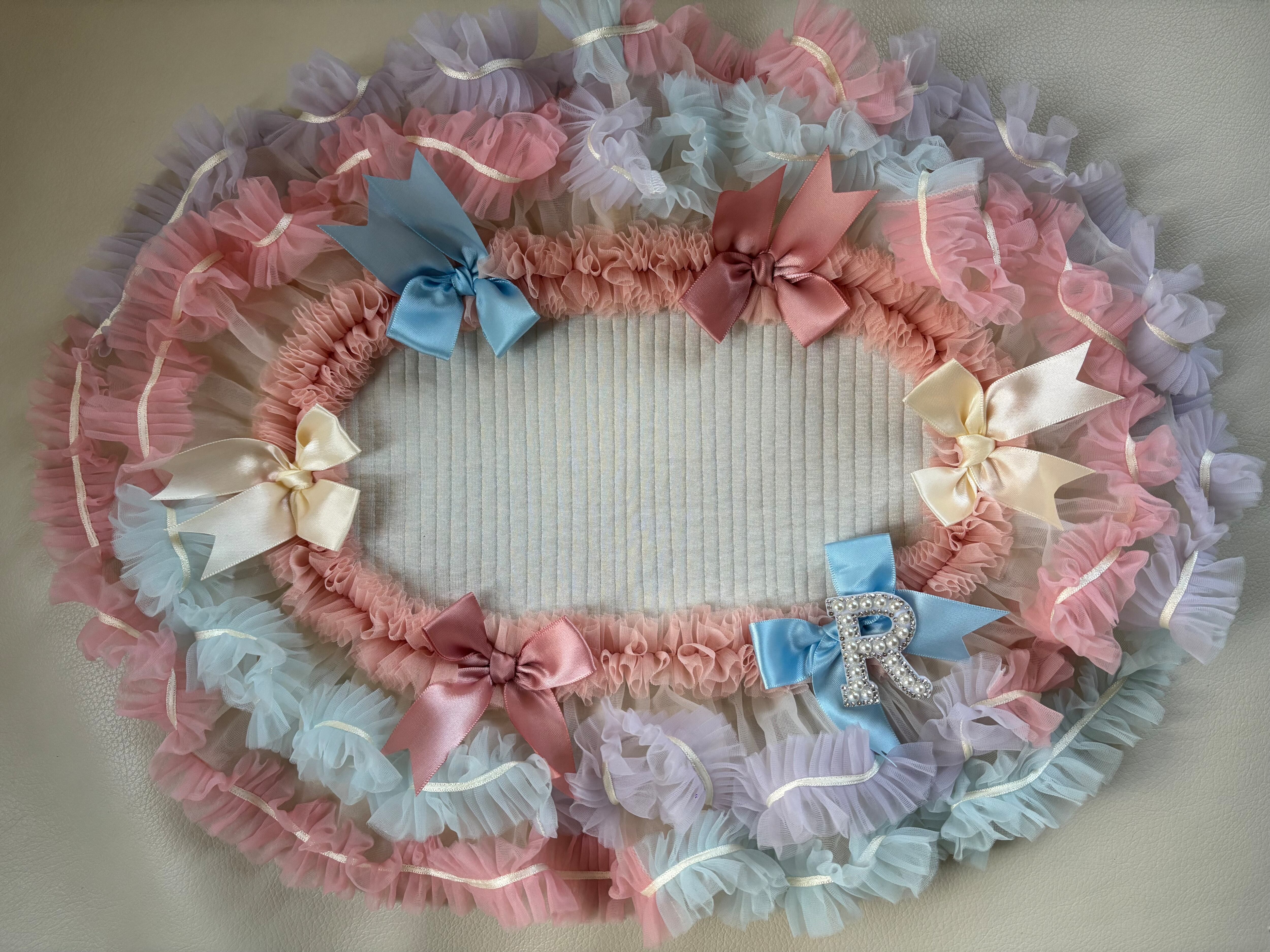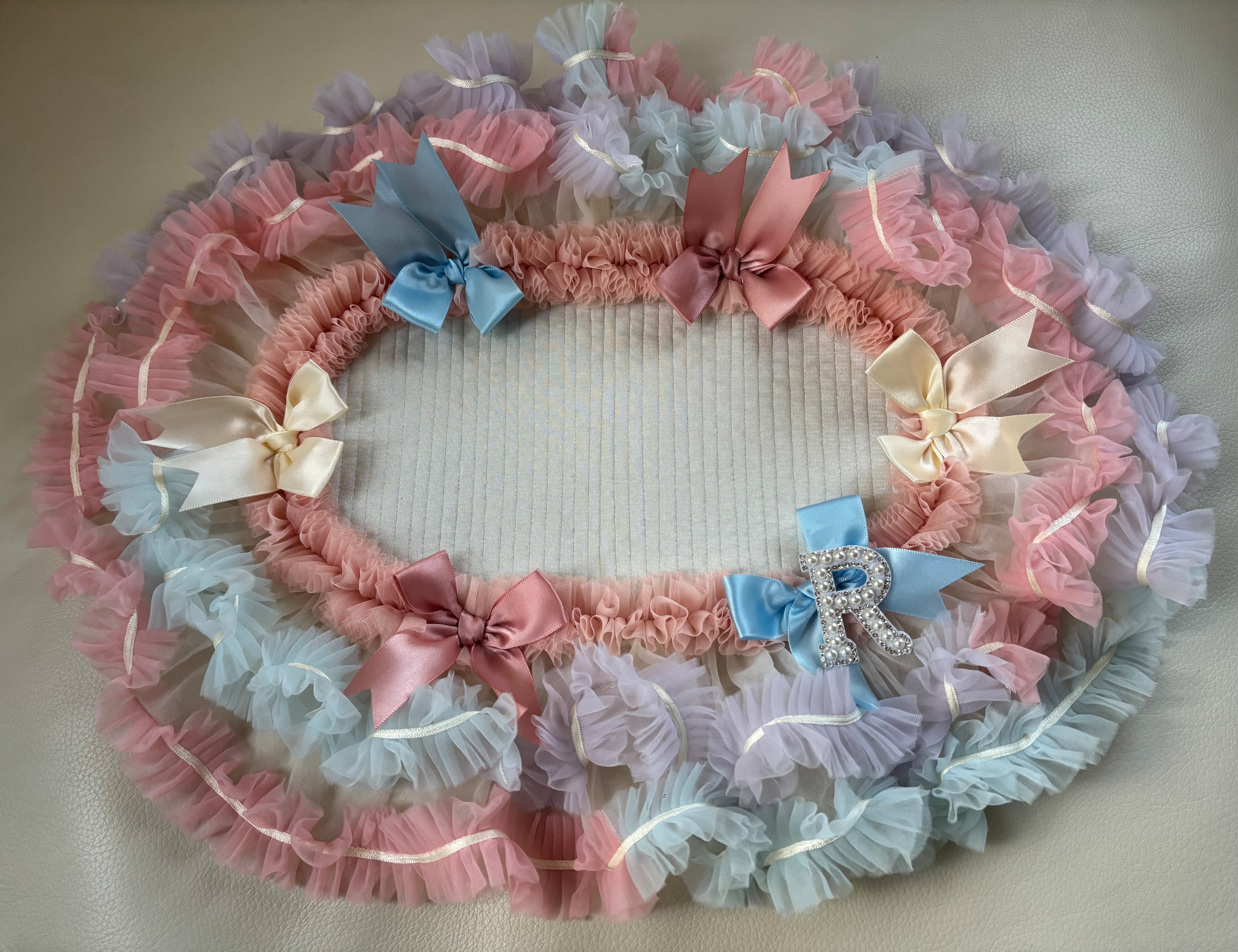 お座り部分には、ソフトな素材を使用しており、持ち運びにも便利な薄手でキルティング仕上げ。リボンのモチーフは自由に取り外しができ、カスタマイズも楽しめます!