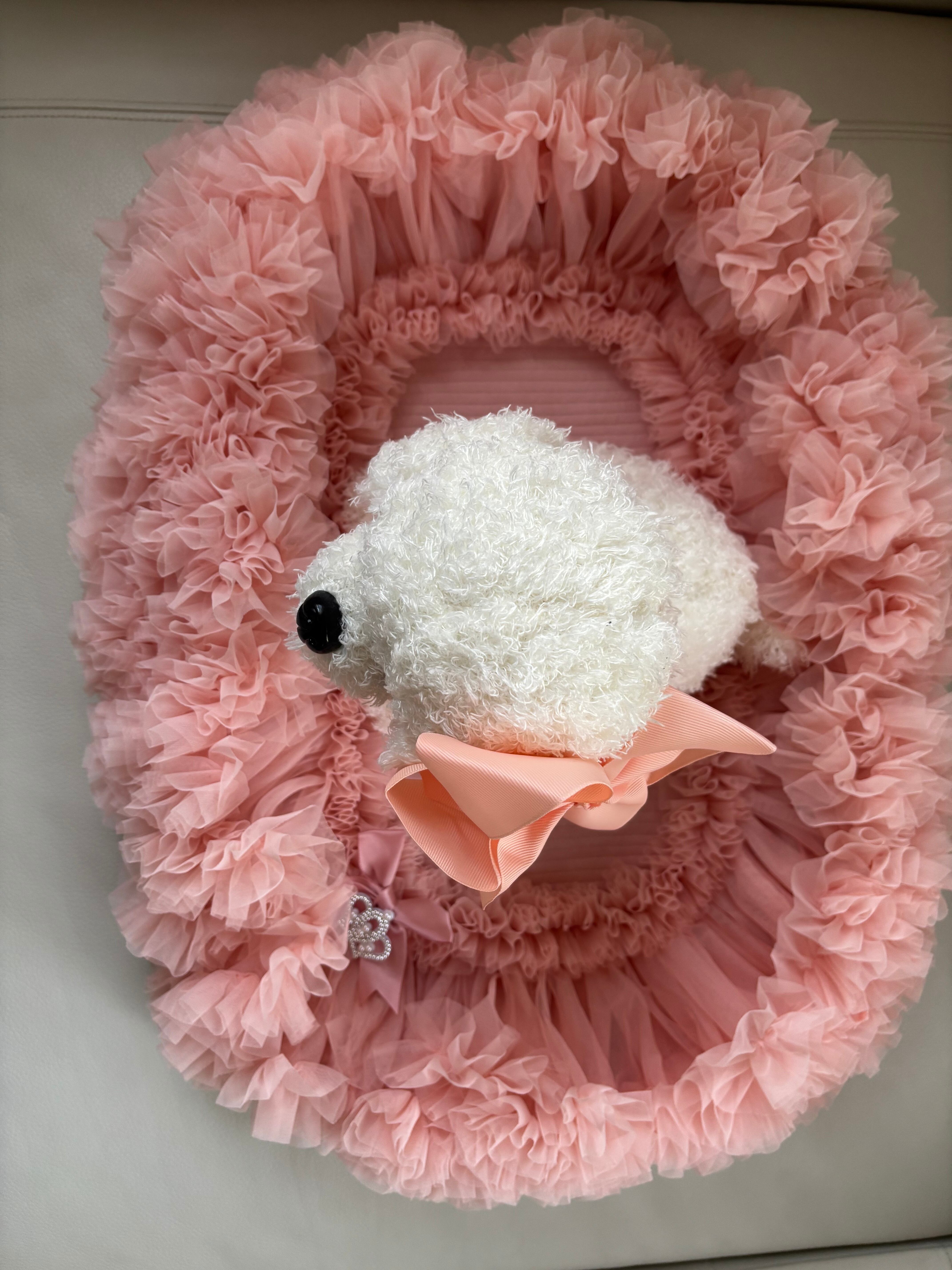 ふんわりとしたマカロンピンクの色合いとキュートなデザインが特別な瞬間を演出し、愛犬とのおしゃれで心地よいカフェタイムをさらに楽しめます。コンパクトながらも、その可愛さは抜群です!